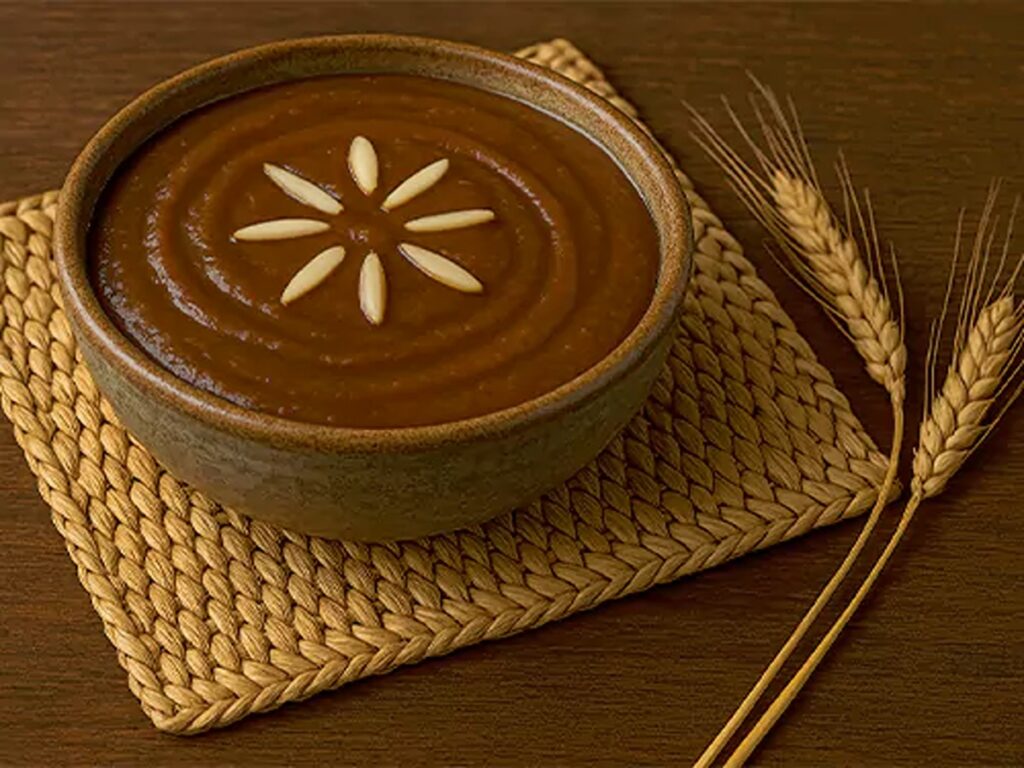 فرنی شیرین و ساده‌ای که به‌طور سنتی در آیینی شاد بهاری تهیه می‌شود.